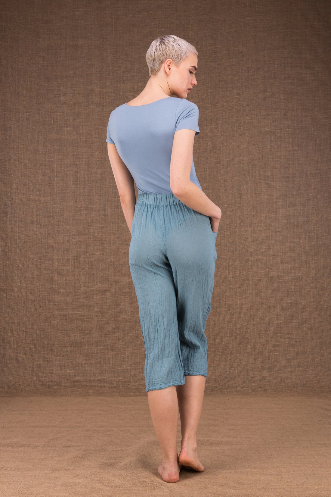 Blue organic cotton trousers for women WIATR. Comfort first.