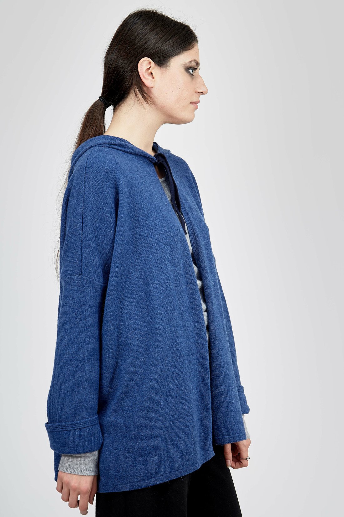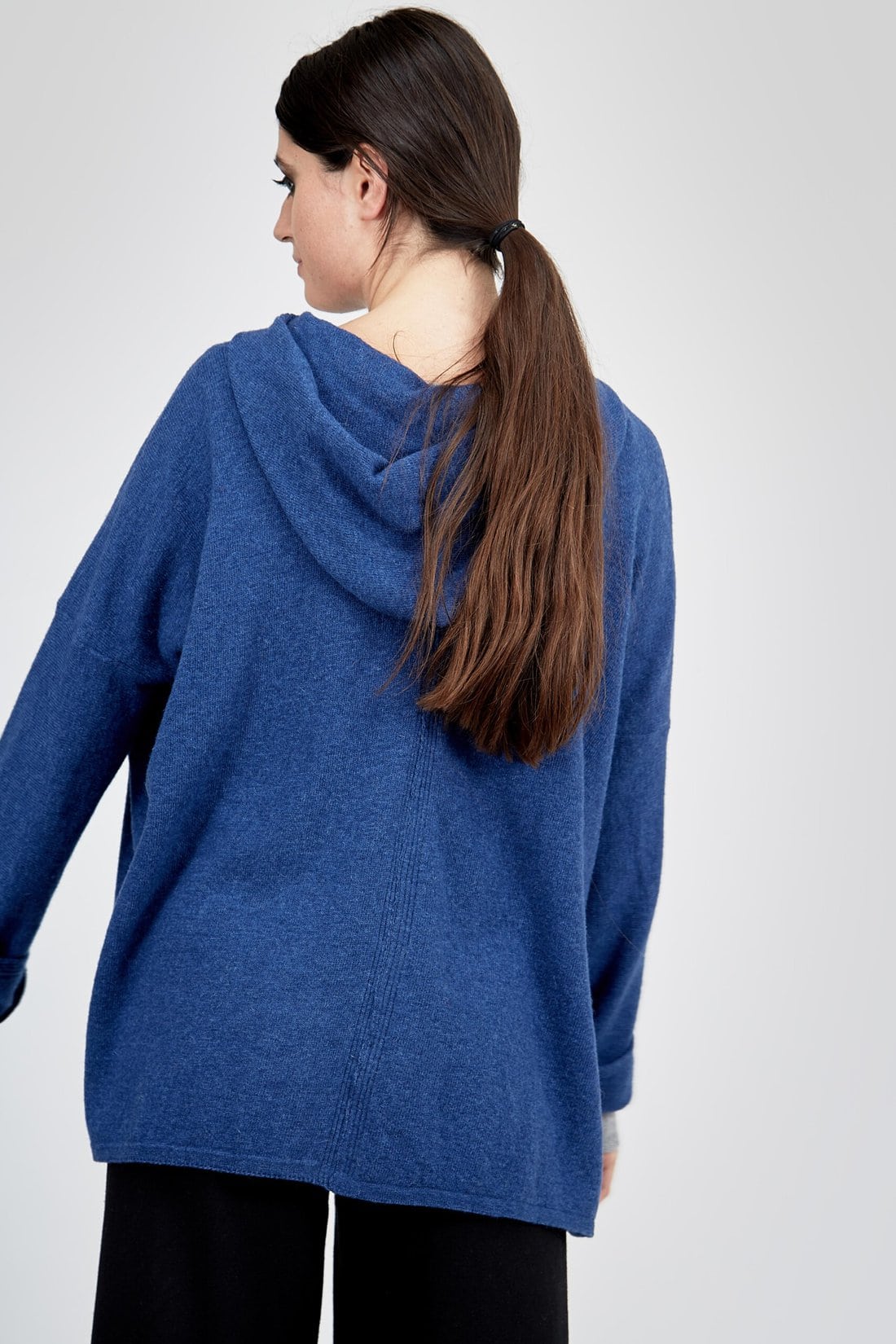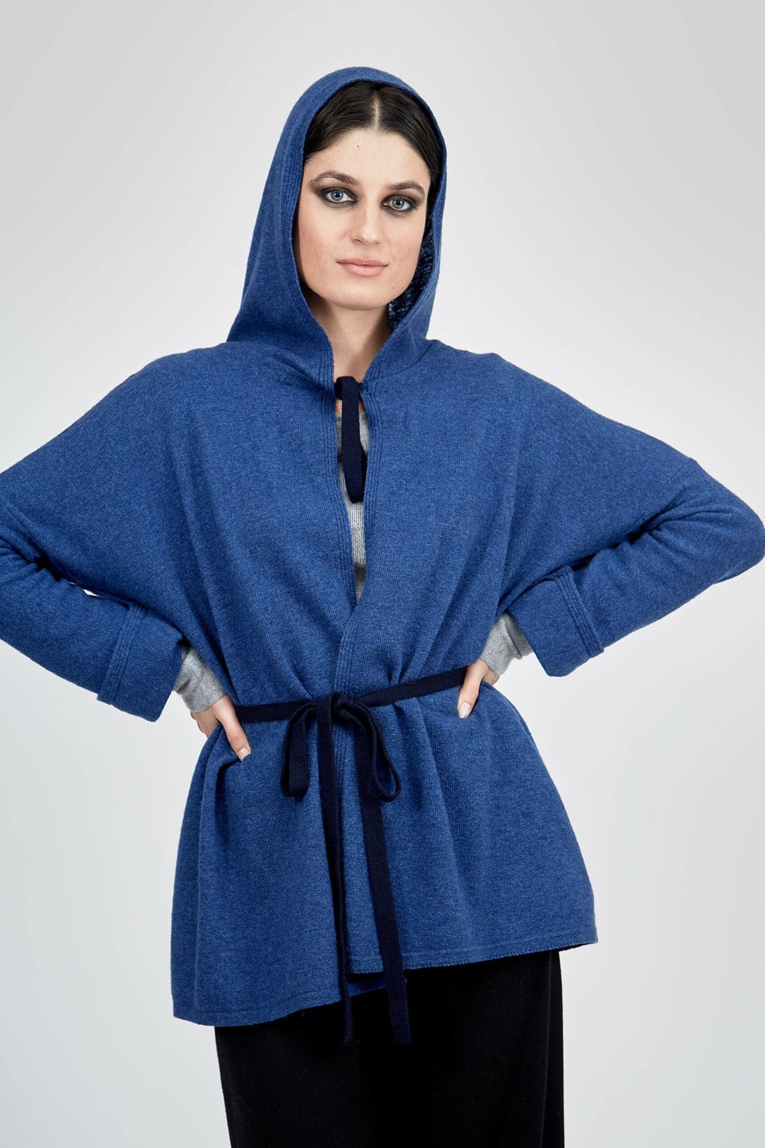 Blue wool hooded cardigan for women LYON. An essential in your wardrobe.