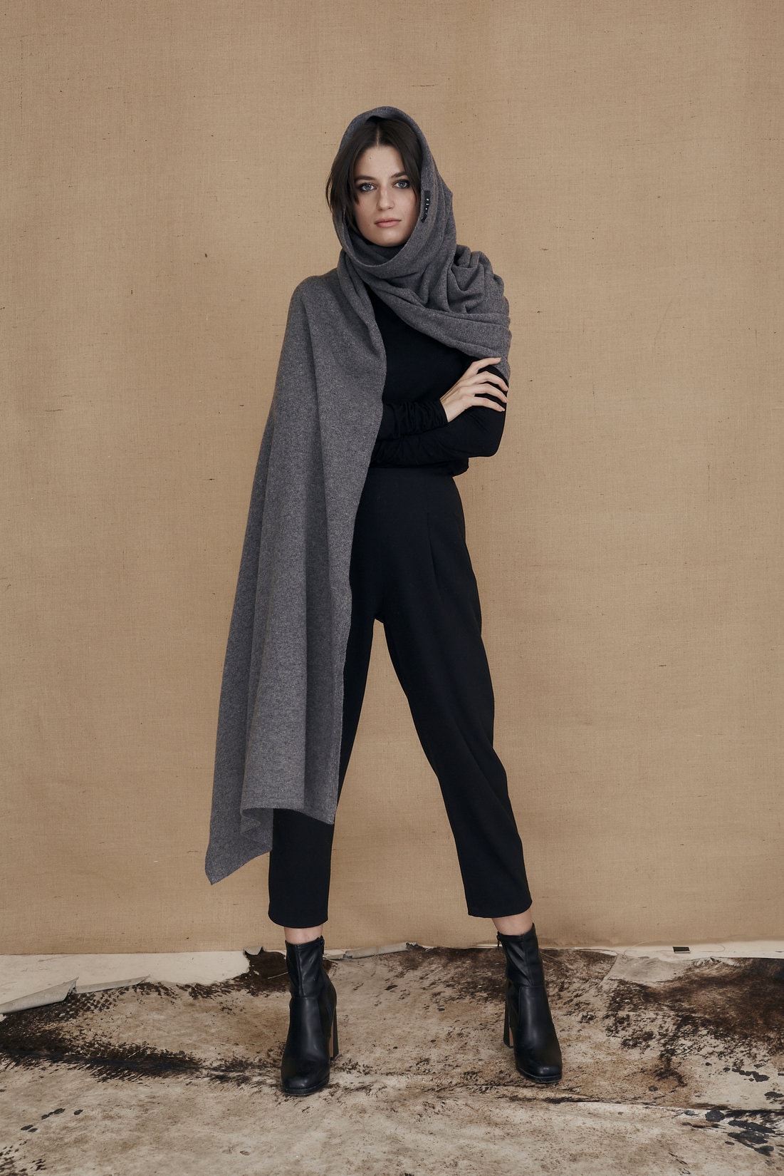 Gray large wool shawl TATRY. Play with your imagination!