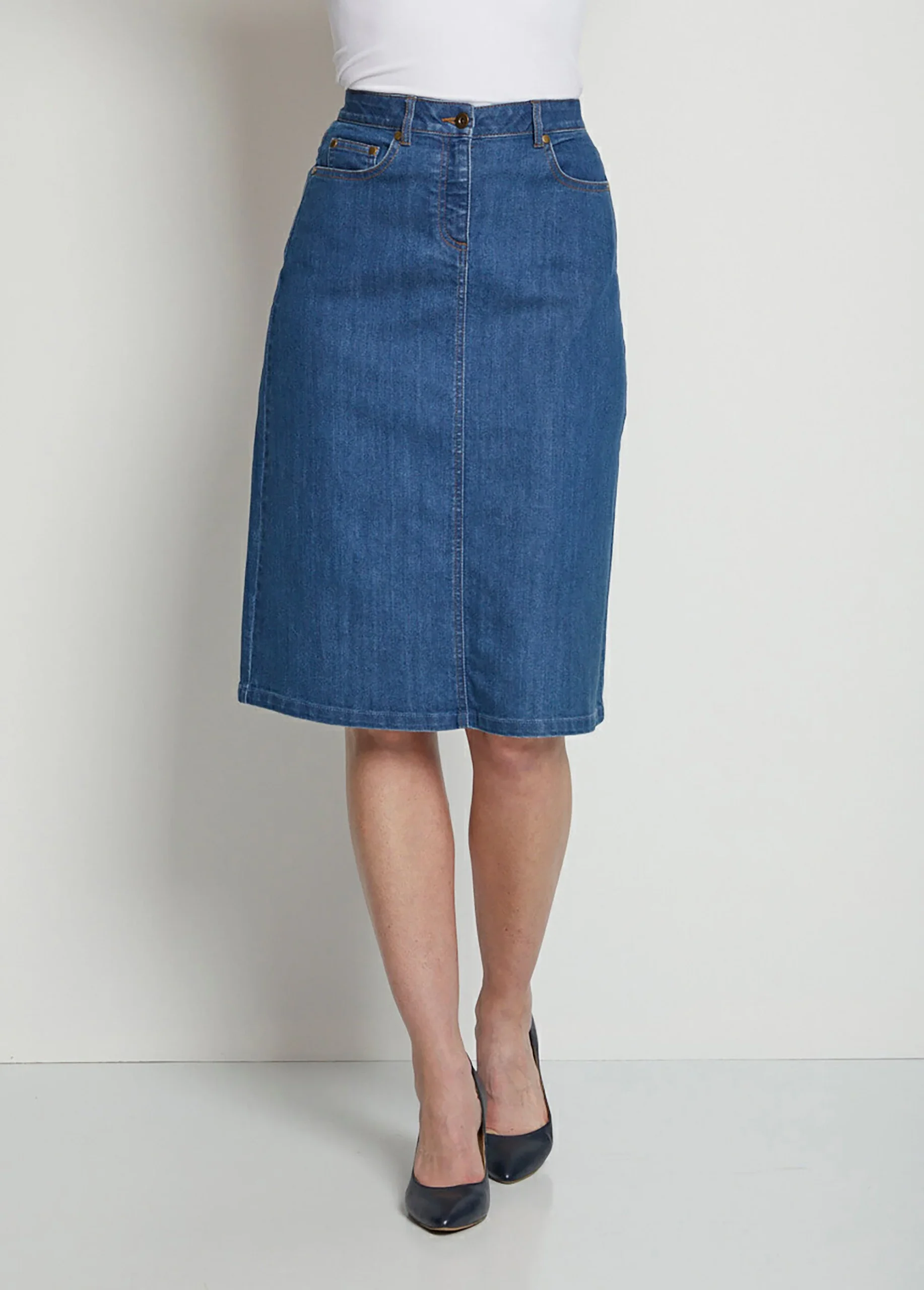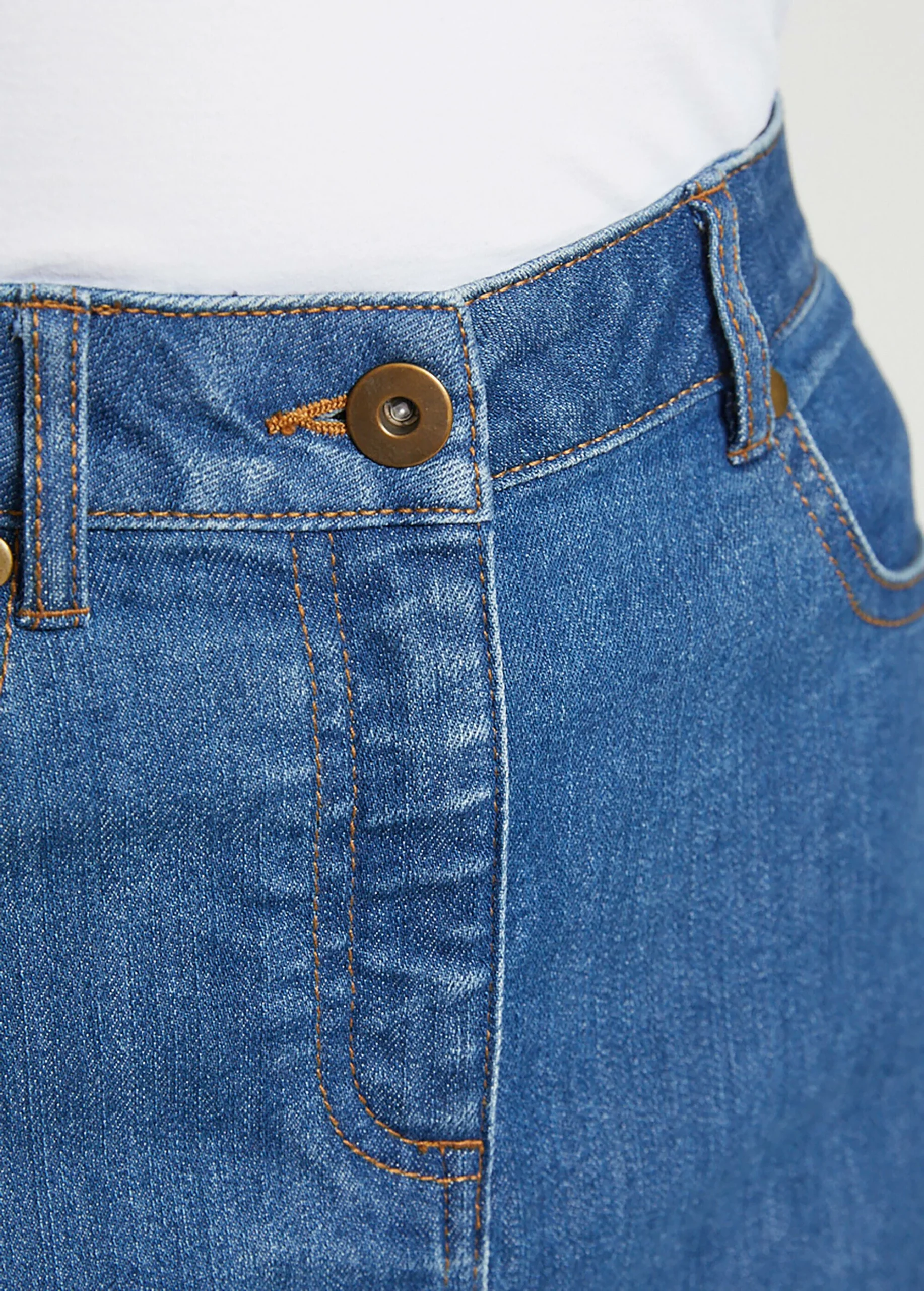La jupe MORPHOSTYLE, un record de confort et une coupe légèrement trapèze qui sublime toutes les morphologies. Son secret ? La ceinture s’oublie totalement grâce à sa matière extensible. Ceinture plate à passants, fermée par glissière et bouton métal. 2 poches cavalières et 1 poche ticket devant. Rehausse, 2 poches plaquées et couture milieu dos. Finitions surpiquées contrastées.