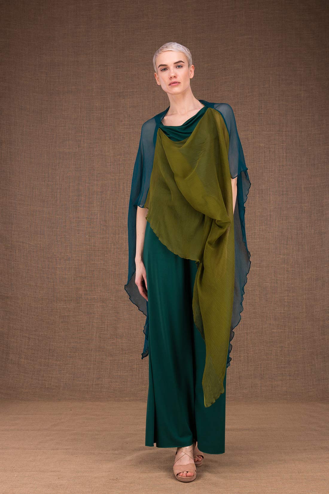This light and 100% silk pistachio and emerald-colored shawl will accompany your summer outfits and will now incorporate your favorite accessories!