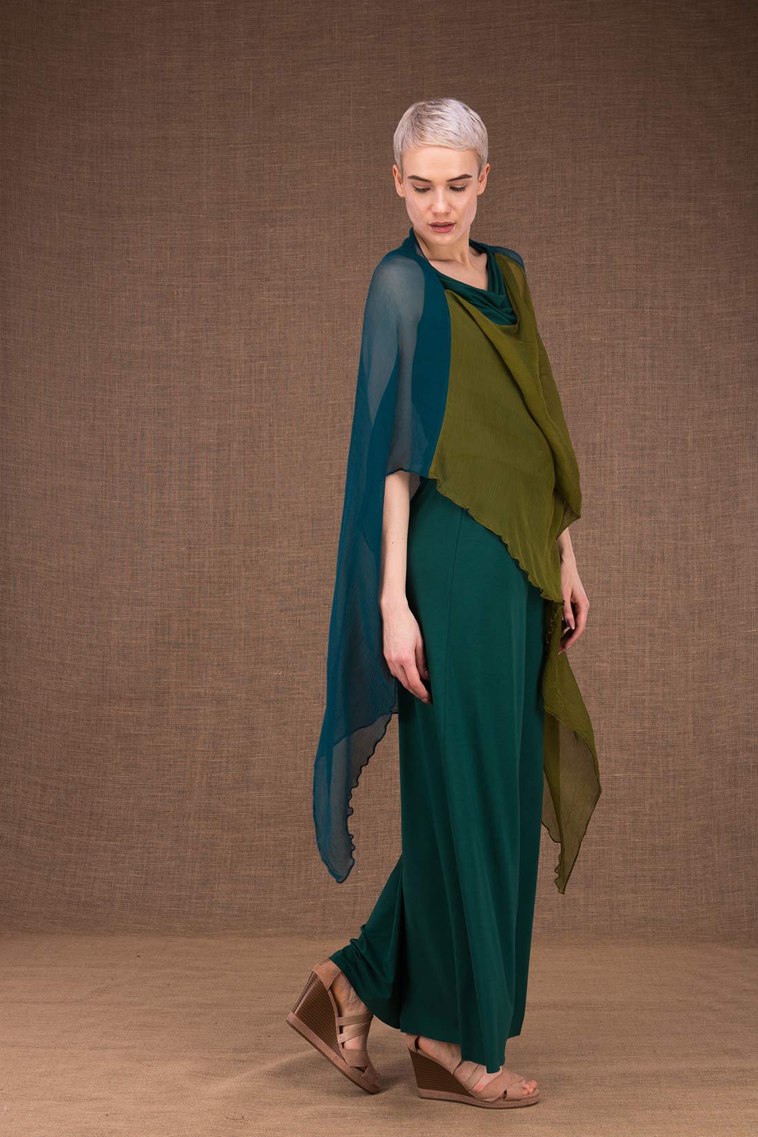 Light green emerald green silk shawl tunic OWOW. Always useful!