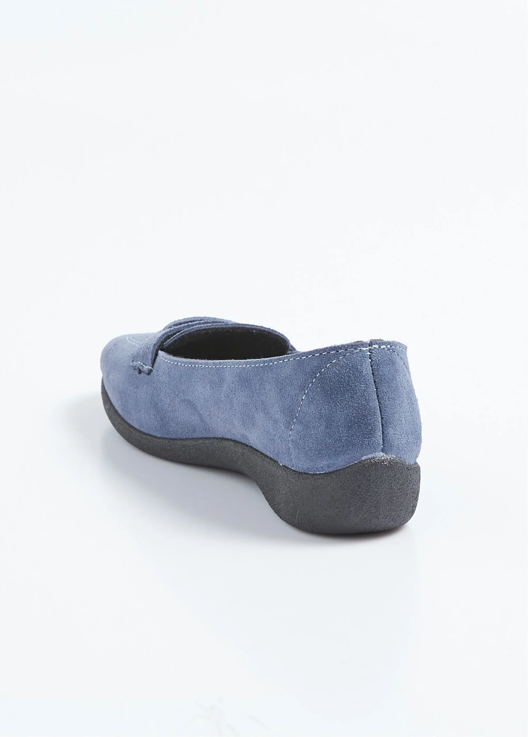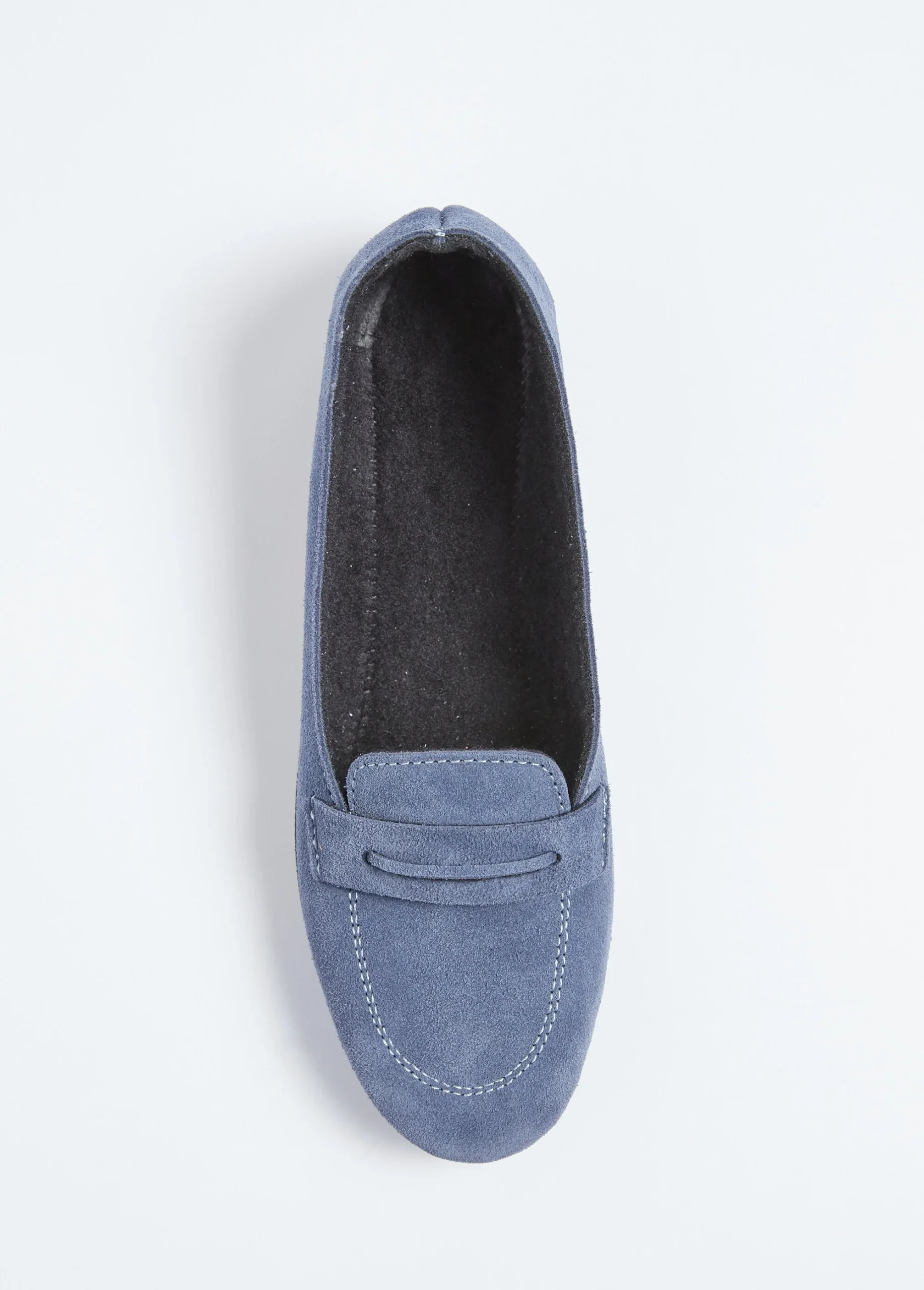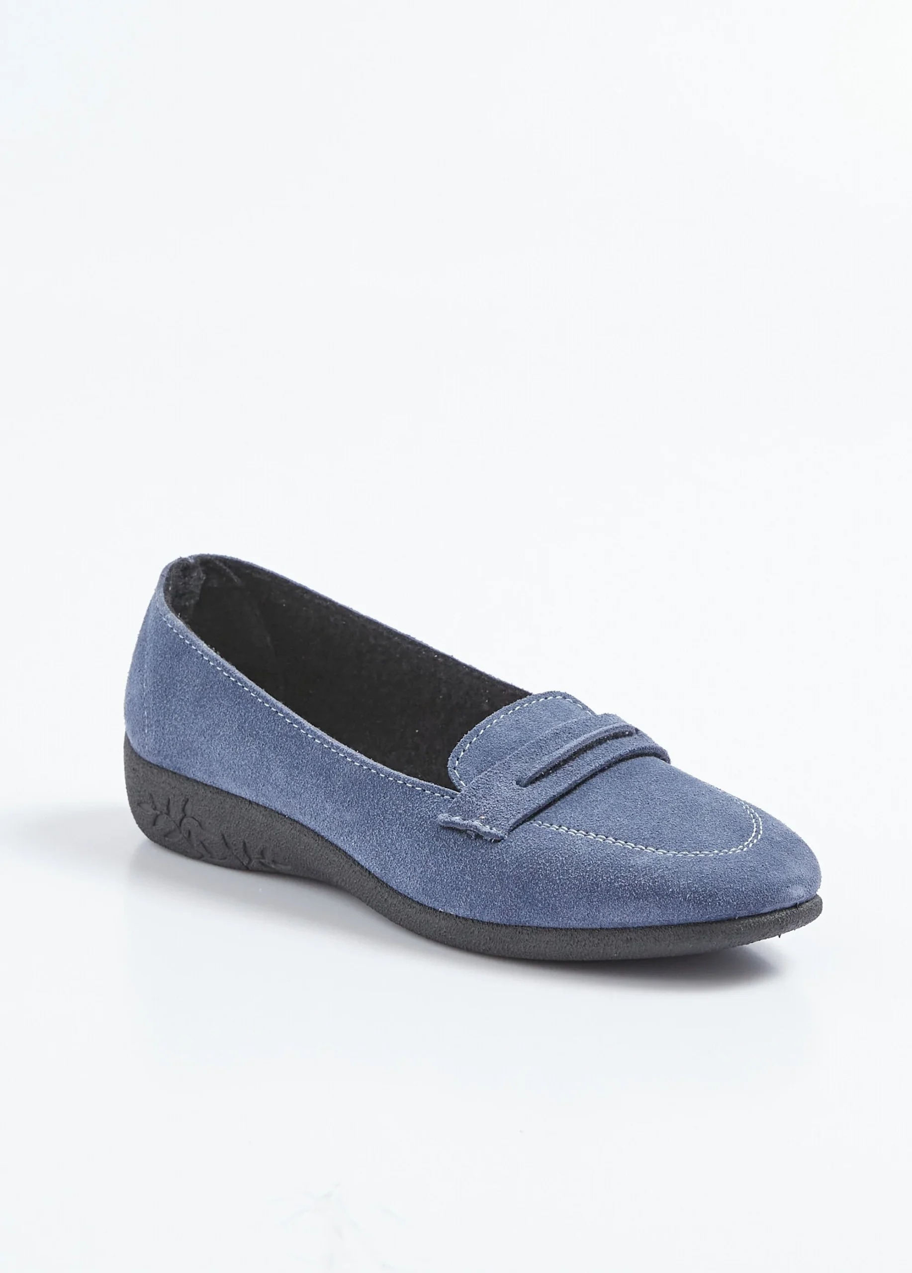Enfilage facile pour des mocassins chics et sobres, avec patte fantaisie et surpiqûres ton sur ton. Fabrication française.