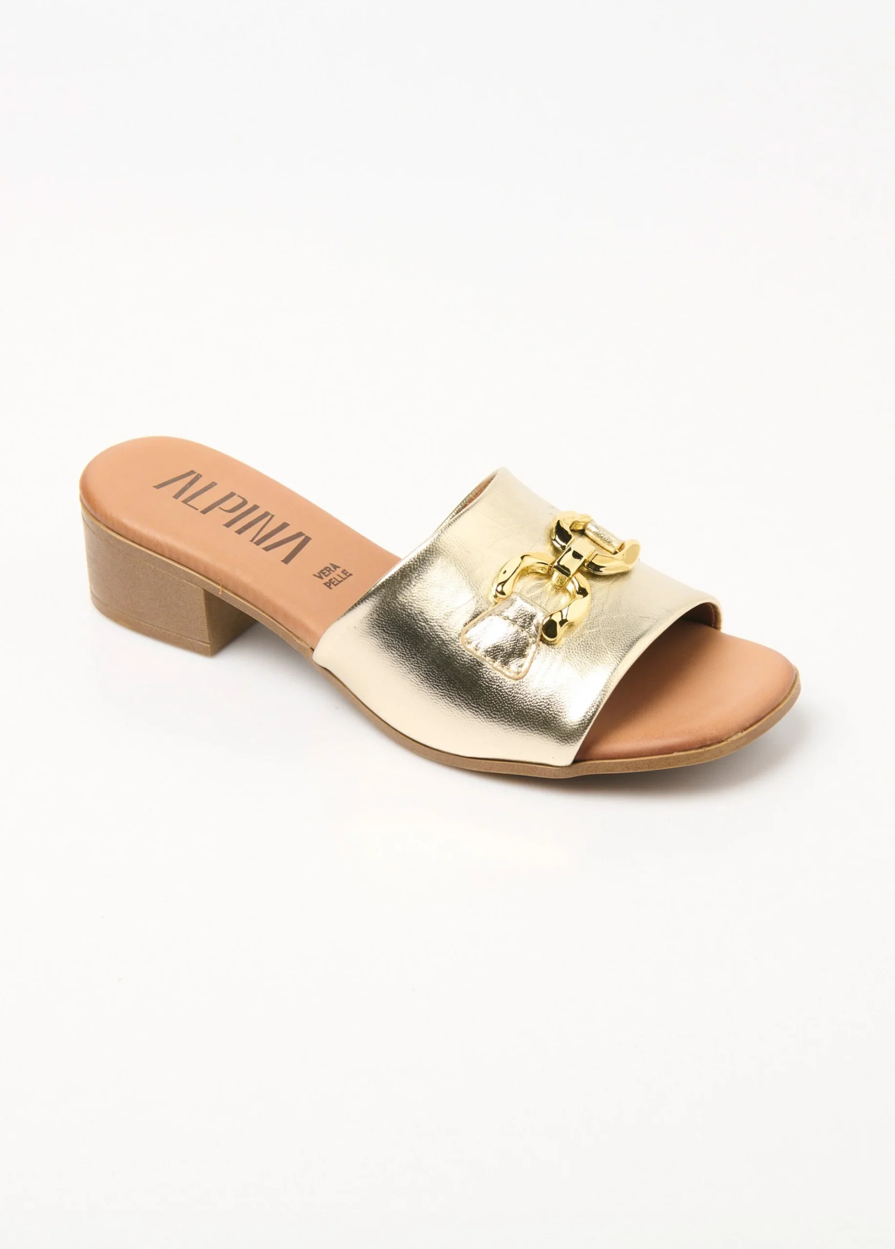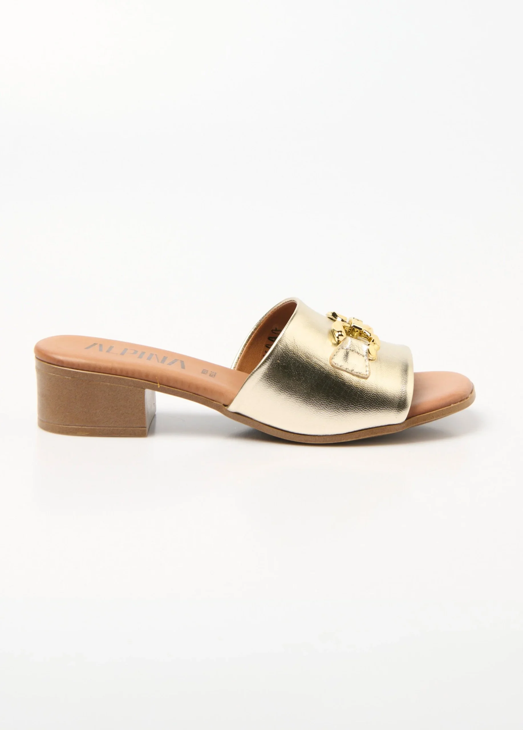 Ces mules en cuir à talon marient élégance et confort grâce à leur large bride, qui maintient parfaitement le pied tout en affinant la silhouette. Sur le dessus, des maillons en métal apportent une touche résolument chic, soulignant le caractère raffiné de ce modèle. Le talon, subtilement proportionné, offre la juste hauteur pour un port agréable au quotidien, tandis que la qualité du cuir garantit une durabilité appréciable. Parfaites pour rehausser un look habillé ou ajouter une note sophistiquée à une tenue plus décontractée, ces mules simposent comme un indispensable mode pour celles qui aiment allier style et bien-être.