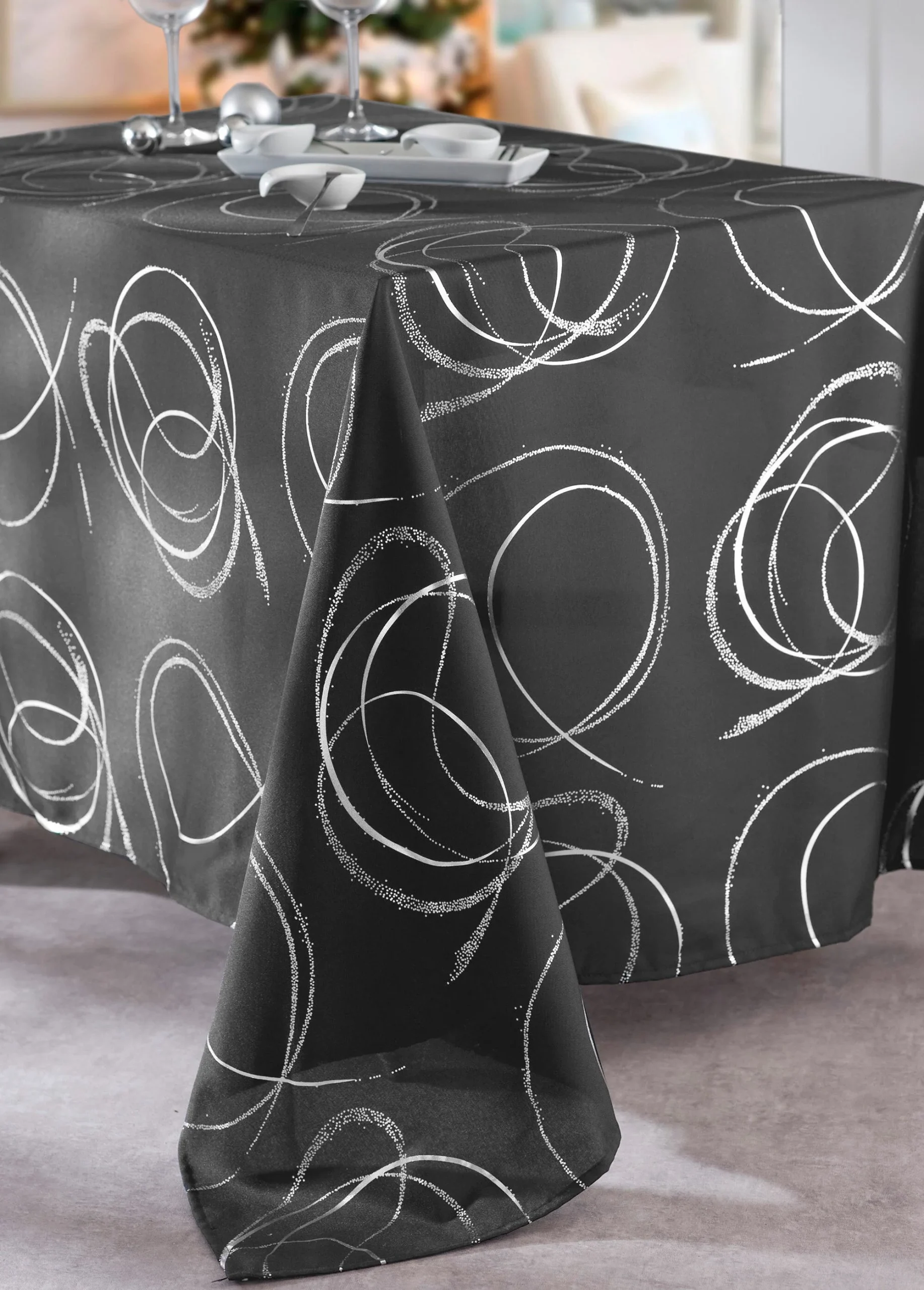 Cette nappe de fêtes arbore un élégant motif de volutes, revisitant les classiques festifs avec une touche de modernité. Son design raffiné et lumineux apporte une ambiance chic à votre table, idéale pour les réceptions et les dîners de fin d’année. Parfaitement adaptée aux occasions spéciales, cette nappe transforme votre table en un espace de célébration élégant, créant une atmosphère festive et sophistiquée. Un modèle intemporel qui saura sublimer vos moments en famille ou entre amis avec beaucoup de classe.