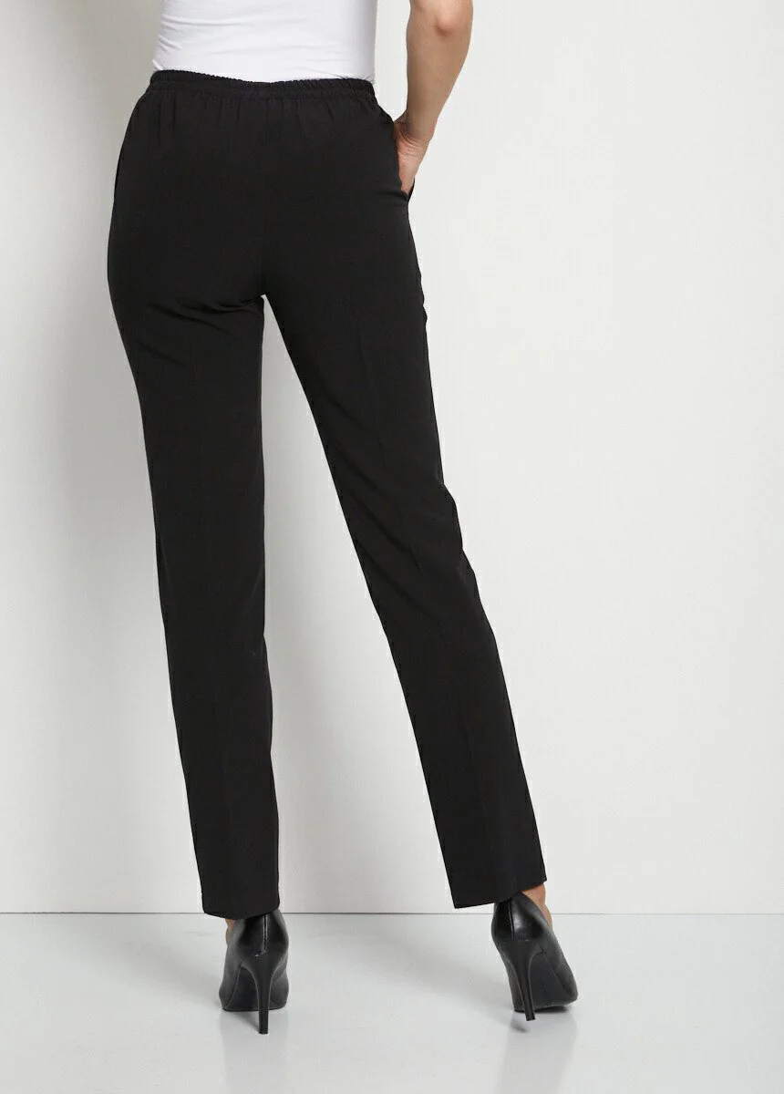 Ce pantalon conjugue modernité et allure d’une coupe droite. Ceinture ventre plat, élastiquée côtés et dos. Fausse braguette. 2 poches biais. Fabrication française.
