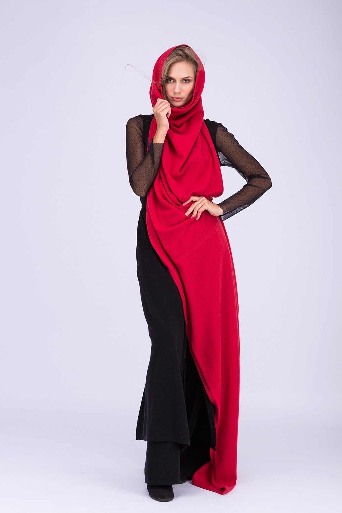 Red large wool shawl TATRY. Play with your imagination!