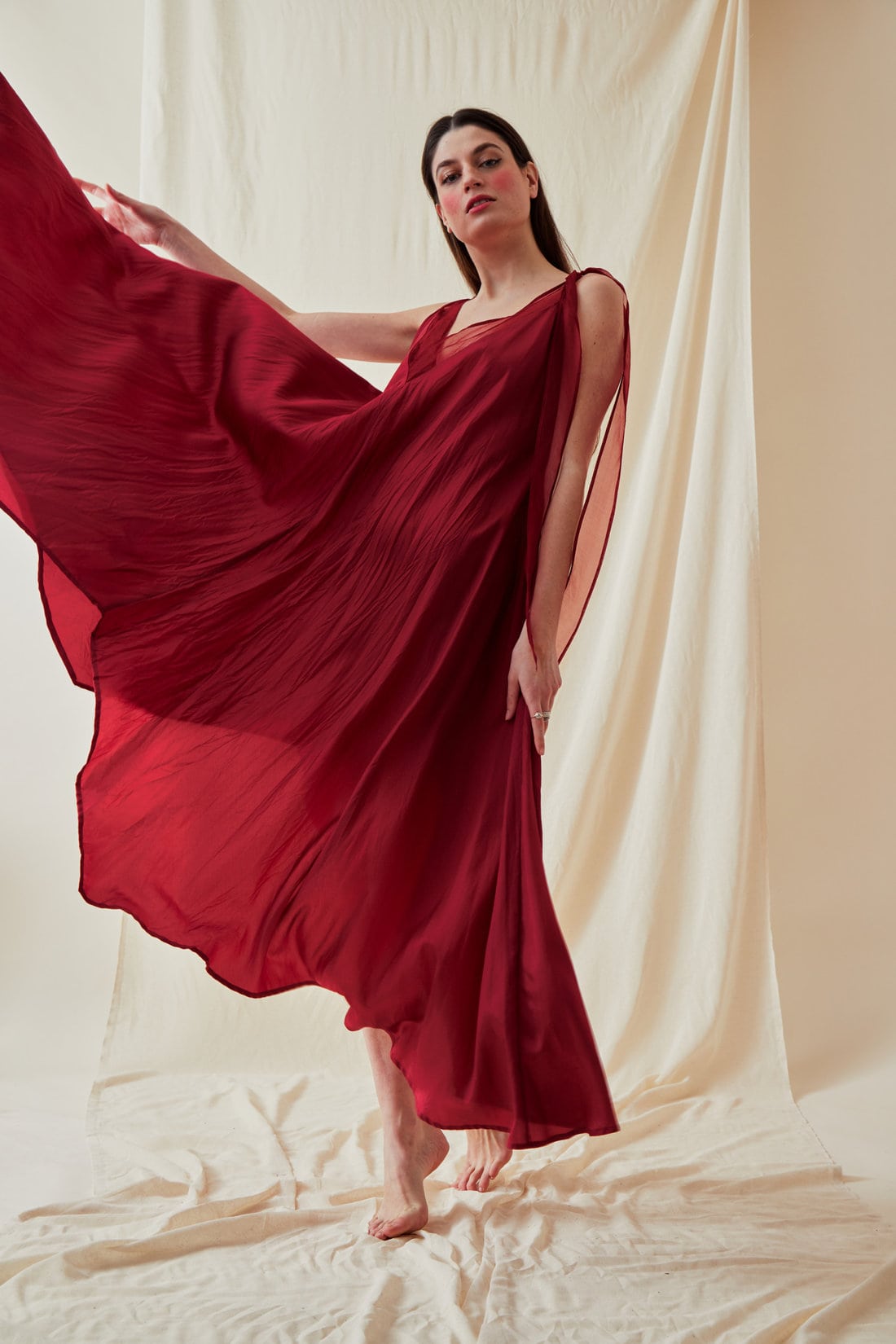 Red long flared viscose dress RIAMA. Romantic bohemian spirit.