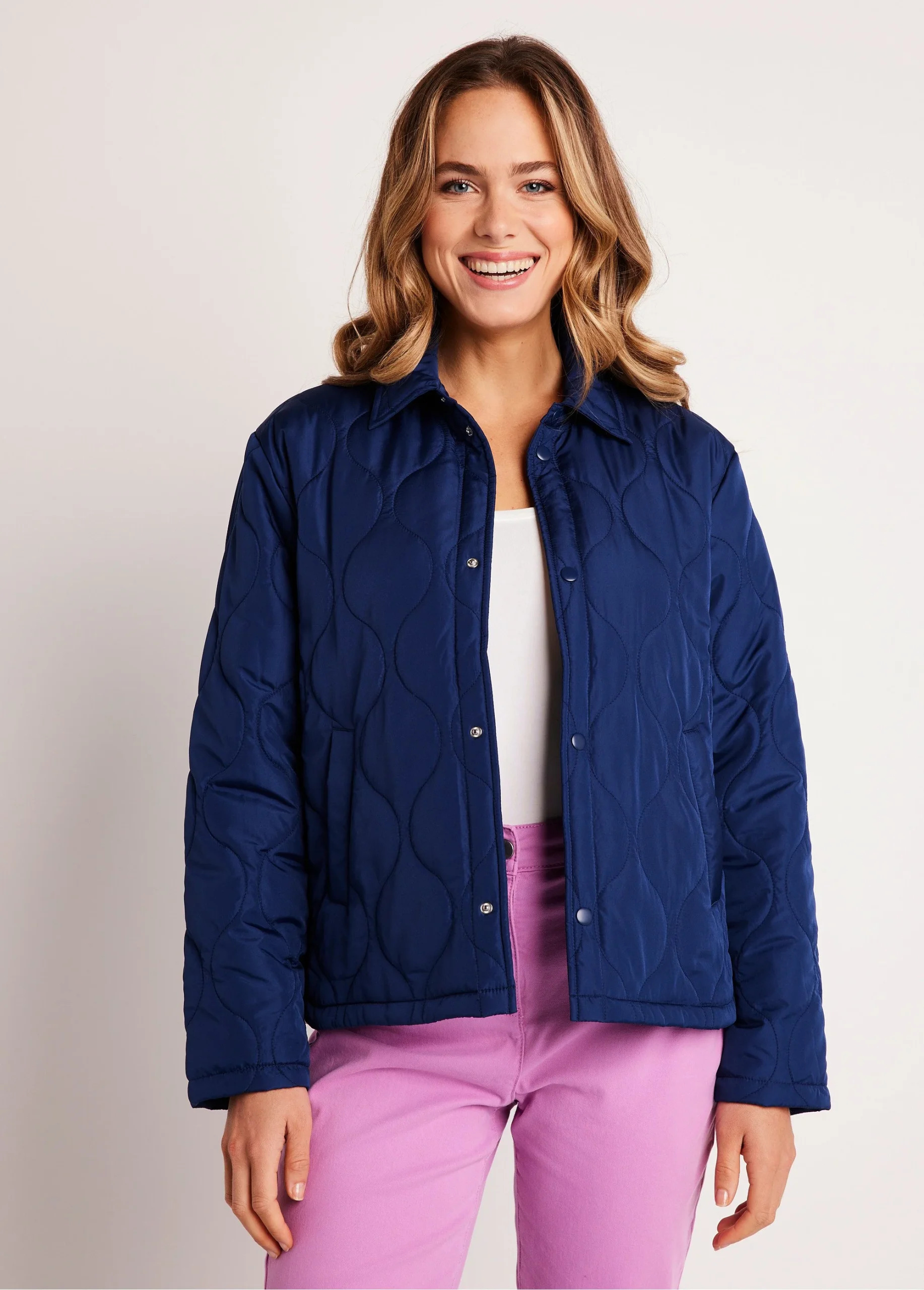 Légèrement matelassée, la veste se prête à un vestiaire citadin comme décontracté. Col pointu. Fermeture pressionnée et 2 poches passepoilées devant. Entièrement doublée et matelassée.