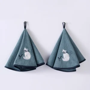 Essuie-mains rond éponge brodée Calitex – lot de 2