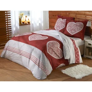 Parure de lit 3 pièces percale avec housse de couette, romance
