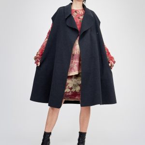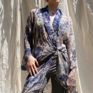 Blue printed silk chiffon kaftan-coat OLYMPE