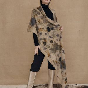 Beige large printed wool shawl VIRTUO