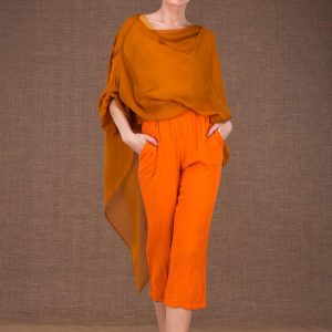 Orange organic cotton trousers for women WIATR