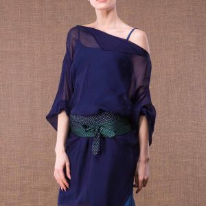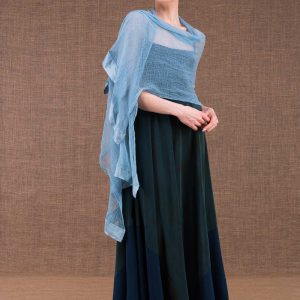 Khaki blue printed chiffon silk kimono jacket for women FIDJI