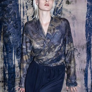 Blue printed wool sweater for women CARA