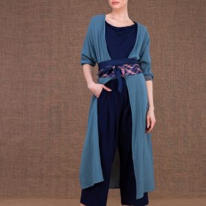 Navy blue and red fabric belt for women OBI-8