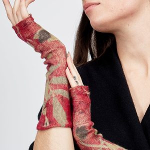 Red printed cashmere mittens for women DOUCE