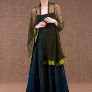 Khaki peacock blue silk shawl tunic OWOW
