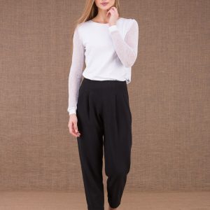 Black high waist viscose trousers for women DZIK