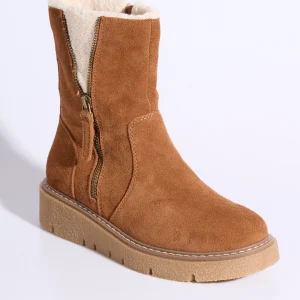 Boots montantes cuir, détails fourrure