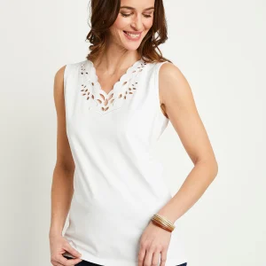 Débardeur col V ajouré brodé