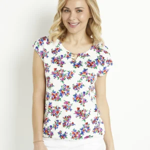 T-shirt blousant col bijou fleuri
