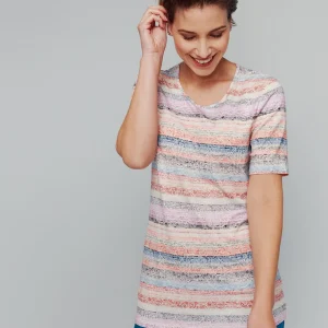 T-shirt imprimé rayures effet dentelle