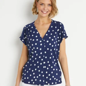 T-shirt ample imprimé pois col V